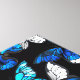 Mariposas realistas, azules y blancas, sin fisuras en el fondo negro.