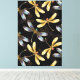 Patrón sin foco con oro, joyas, libélulas brillantes con las detalladas alas brillantes sobre fondo negro. Dragonfly de oro.