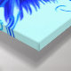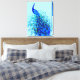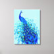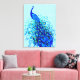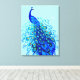 Lienzo en un fantástico pavo real de cola lujosa, en tonos turquesa y azul cobalto, sobre un suave fondo acuático