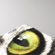 Este diseño presenta una imagen de alta definición de un gato de tabby con piel gris y negra y hermosos ojos verdes. Se está lamiendo confiadamente su propia pata para prepararse.