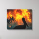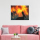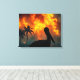 Lienzo Pelican en Silhouetted viendo un incendio forestal