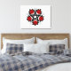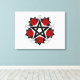 Pentagrama negro con estampado, decorado con rosas rojas florecientes con hojas sobre fondo blanco. Estilo tatuaje.
