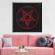 Pentagrama rojo, invertido, texturado en círculo, sobre fondo negro. Símbolo oculto. 666