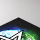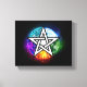 Pentagrama luminoso de dibujo artístico con cinco elementos mágicos, agua, tierra, fuego, astral, aire sobre fondo negro. Pentagrama de Wiccan. Wicca