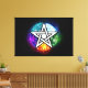 Pentagrama luminoso de dibujo artístico con cinco elementos mágicos, agua, tierra, fuego, astral, aire sobre fondo negro. Pentagrama de Wiccan. Wicca
