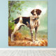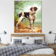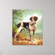 Perro cazador con pájaro en la boca. Dibujo vintage colorido. Recuperador con piel de cazador colorida