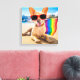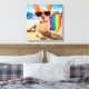 Esta linda foto muestra a un perro chihuahua en la playa llevando una bandera del Orgullo Gay de color arcoiris.