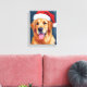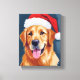 Perro Golden Retriever Alegre | Impresión en Lienzo de Perro con Gorro de Santa Vacaciones de Navidad