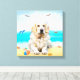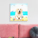 El perro lindo sentado en la playa es un regalo perfecto para alguien que ama esta raza de perro.