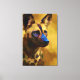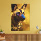 Una pintura digital que combina el hiperrealismo con la abstracción audaz y contemporánea. Este retrato cautivador de un Perro Salvaje Africano muestra un choque armonioso de tonos vivos de azules profundos, ocres dorados y verdes eléctricos que alientan la vida en cada cadena y sombra de piel. Las pinceladas texturadas, casi cubistas, añaden profundidad y movimiento, transformando un simple perfil canino en una declaración de belleza cruda e intensidad emocional.