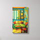 Personalizado Acogedor salón decorado con cuadros de escenas Este cuadro es un colorido y acogedor salón con greens, blues, naranjas, dorados y amarillos que se combinan para hacer un dibujo artístico casero. La sala de estar es una cómoda y cercana sala de estar con colores alegres, naranjas, verdes, azules y dorados. Los colores turquesa de las paredes y de las ventanas son muy agradables. Los colores vivos rojo y naranja de las almohadas y las sillas son estéticos. Los colores de la madera y la madera parecen madera. El cuadro contiene una profusión de colores dorados, toscos y amarillos que iluminan y alegran el cuadro. Envuelve esta imagen y ponla en tu pared o dásela como un regalo a las personas que les gustan los hogares, casas, apartamentos y salones. Esta imagen te hace sonreír y sentirte como en casa en un ambiente artístico. El nombre de Connie en la parte inferior de la foto muestra que la obra es un regalo para alguien llamado Connie. Puede cambiar la Connie a otro nombre haciendo clic en el vínculo Personalizar y escribiendo otro nombre. Este es un brillo de lienzo envuelto premium. El arte fue creado con arte de inteligencia artificial, convirtiendo a tus preciados recuerdos en una maravillosa obra de arte con el premium lienzo envuelto en Giclee de Zazzle. Los lienzos de Zazzle de secado instantáneo, hechos con papel de archivo sin aditivos para la mezcla de algodón y poli, crean impresiones duraderas resistentes a la desvanecimiento. Utilizando tintas pigmentarias (en lugar de tintas a base de tinte), sus fotos y obras de arte se imprimirán a la máxima resolución, conservando todos sus detalles originales y su espectro de colores completo. Añade fotos familiares, fotos de vacaciones, obras de arte y otros momentos hermosos para crear grandes recuerdos para tu hogar! Las impresiones artísticas son de calidad galerista Giclee. Las impresiones están disponibles en varios tamaños estándar y personalizado. Los lienzos están fabricados con un recubrimiento especial con tinta receptiva para proteger la superficie impresa de la fragmentación cuando se estira. Los lienzos están hechos con un tejido apretado ideal para la impresión nítida de la fotografía y el arte fino.