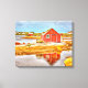 Colorida choza de pescadores rojos reflejada en el agua en la isla Fogo en Terranova, Canadá.