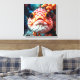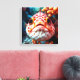 Un arte en lienzo con una cara de pez linda de cerca ¡solo porque es linda! Un pez blanco y naranja con coral naranja.