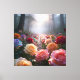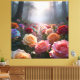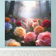 Ein zauberhafter Gartenweg, gesäumt von prachtvollen, taufrischen Rosen in Rot, Gelb, Rosa und Violett, die im goldenen Licht der aufgehenden Sonne leuchten. Diese Szene symbolisiert Frieden, Schönheit und die Magie der Natur – ein Ort zum Träumen und Verweilen.