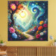Ein zauberhafter Gartenweg, gesäumt von prachtvollen, taufrischen Rosen in Rot, Gelb, Rosa und Violett, die im goldenen Licht der aufgehenden Sonne leuchten. Diese Szene symbolisiert Frieden, Schönheit und die Magie der Natur – ein Ort zum Träumen und Verweilen.