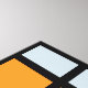 Este aceite sobre lienzo de 1920 muestra una composición con bloques negros, rojos, grises, amarillos (naranjas) y azules en un estilo que llegó a conocerse como De Stijl o Neoplasticismo.