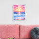 Lienzo Pink Ocean Waves Sunset Watercolor