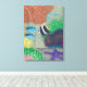 Pintura de una colorida escena de peces tropicales, con estrellas de mar, coral, peces cebra y más, impresa en lienzos envueltos.