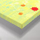 Un moderno cuadro paisajístico contemporáneo con una tranquila florida pradera de verano con pájaros volando contra el cielo y un bosque de pinos a lo lejos. Los colores amarillo y verde son frescos y edificantes. Arte original de Nic Squirrell.