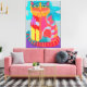 Mi colorida pintura abstracta de un gato de bonito está impresa en un lienzo envuelto