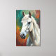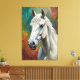 Un fascinante retrato al estilo de pintura al óleo de un majestuoso caballo blanco, pintado con vibrantes pinceladas y ricas texturas. Esta elegante huella de lienzo añade fuerza, gracia y belleza intemporal a cualquier pared. Una creación de ZR21Diseños.
