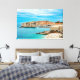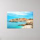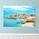 Paredes de la fortaleza de Dubrovnik, playa y agua turquesa. Famosa playa de Banje con vistas a las murallas de la ciudad de Dubrovnik y al casco antiguo. Hermosa agua turquesa y manada amarilla.