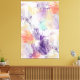 Espectáculo de pincel abstracto de colores brillantes de color púrpura, naranja, verde menta, violeta y blanco. Coincide con el diseño con los colores de la decoración y cuelga un poco de color en la pared.