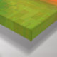 Una combinación de arte tradicional convertido en arte digital. Colores pixelados con una gran espiral giratoria en colores otoñales de amarillo, marrón, verde y naranja.