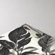 Planta de cacerolas de escala de grises con hojas enormes sobre un dibujo de mesa.
