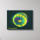 Una imagen fractal esférica segmentada (o articulada) verde, azul y amarillo sobre un fondo verde oscuro. Personalizar agregando su propio texto.
