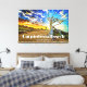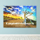 Carpinteria Beach cuenta con una imagen vintage de viajes de arte retro que muestra una imagen de una salida del sol sobre los faroles en la playa de Carpinteria en California.