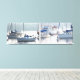 Impresión de lona enrollada e impactante de veleros del puerto con fotografía de pelícanos.