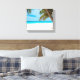 Tranquila y tranquila playa de arena blanca y tropical. Aguas turquesas y algunas palmeras a la sombra. El lugar perfecto para descansar y relajarse.