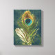 Ilustracion vintage de una pluma de pavo real con un fondo de papel pergamino grueso y diseño giratorio. Un diseño elegante para las mujeres que aman las aves, los animales y la naturaleza.