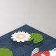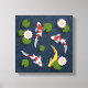 Hermoso ilustracion vectorial minimalista de coloridos peces japoneses koi nadando entre las nenúfares en un estanque. Koi es una carpa ornamental de colores vivos domesticada en Japón.