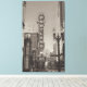 Una señal de estilo vintage de un Portland, Oregón, teatro con letras blancas se alza contra un cielo azul brillante. El cartel se adjunta a un edificio de ladrillo con una marquesina debajo que muestra la información del programa. La escena está situada en una calle de la ciudad con un paso peatonal, luces de calle y coches estacionados a lo largo de la curva.