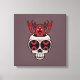 Ilustracion vectorial personalizado de un demonio que se alza de un cráneo con pesados gestos metalizado de la mano del cuerno del diablo.