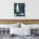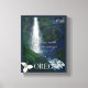 Un cuadro digital de una cascada que se encuentra a lo largo de la ruta de retorno de las Cataratas Multnomah en el área de escena del desfiladero del río Columbia en Oregón. El número blanco en la esquina superior es el año en que Oregón se convirtió en estado. El lema del estado es la letra blanca en el centro de la pintura, "Ella vuela con sus propias alas". Al final de la pintura hay una flor blanca de trillium junto a Oregón con letras blancas. El cuadro se completa con un sencillo borde azul oscuro. Derechos reservados ©2023 Kimberly J Tilley.