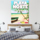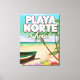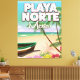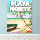 Afiche de viaje de Playa Norte, México con una playa mexicana y un bote de pesca.