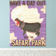 Poster de viaje vintage de Safari Park. Un poster de viaje de vacaciones retro a un parque Safari con hipopótamo.