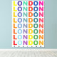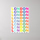Retro Londres poster de Inglaterra con texto colorido.