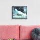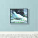 Un cuadro digital de Spirit Falls en Royalston, Massachusetts. Hay una rana de toro sentada sobre musgo viendo el flujo de agua entre las rocas. En la esquina superior, con letras blancas, está el año en que Massachusetts se convirtió en un estado, "1788", y en el centro está, "Descubre el sendero Tully, ve al oeste de Boston", y en la parte inferior está el nombre del estado. Un borde azul oscuro termina con el cuadro. Derechos reservados ©2023 Kimberly J Tilley.