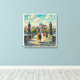 Journey into the enchanting soul of Prague through this mesmerizing impressionist masterpiece that captures the City of Spires in all its romantic glory and timeless beauty. The iconic Charles Bridge stretches gracefully across the composition, its ancient stone arches guarded by majestic bronze statues rendered in deep tones that seem to watch over centuries of human stories. Beyond the bridge, Prague's legendary skyline rises majestically—soaring Gothic spires, the magnificent St. Vitus Cathedral, and terracotta-roofed buildings clustered in warm earth tones beneath a luminous sky painted in brilliant turquoises, soft yellows, and wispy cream clouds that swirl with artistic passion. Elegant figures in vintage attire stroll across the sun-warmed bridge—women in jewel-toned dresses (golden yellow, sapphire blue, ruby red) alongside men in crisp suits, their colorful silhouettes creating a human tapestry of romance and cultural sophistication. The Vltava River sparkles below in shades of turquoise and blue while lush green foliage frames the architectural splendor. Vintage street lamps glow softly along the bridge's edges, adding nostalgic warmth to this timeless tableau. The artist's passionate, textured brushwork infuses every element with movement and emotion: swirling skies that seem alive with possibility, thick impasto strokes that create dramatic depth, and shadows dancing across ancient stones. Perfect for those who cherish Central European heritage, Prague's architectural magic, vintage aesthetics, romantic city scenes, and art that celebrates the intersection of history and living culture, this stretched canvas transforms your space into an eternal portal to Prague's most enchanting moments