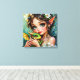 Fairy Tale themed canvas wall art. A pretty anime fairy holding her cute baby dragon. A beautiful fairy tale vibe in an enchanted setting ethereal art.