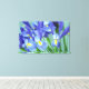 Los iris se acercan a la cámara como corredores en una línea de inicio lista para el muelle. Fotografía de color floral de flores de iris morado. ¡La foto de las flores es genial para los regalos de arte de las flores de iris morado! Haz una impresión de arte de lienzo envuelto con motivos florales de iris personalizado con tu diseño de arte personalizado.