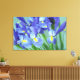 Los iris se acercan a la cámara como corredores en una línea de inicio lista para el muelle. Fotografía de color floral de flores de iris morado. ¡La foto de las flores es genial para los regalos de arte de las flores de iris morado! Haz una impresión de arte de lienzo envuelto con motivos florales de iris personalizado con tu diseño de arte personalizado.