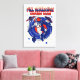 Astronauta azul y roja flotando en el espacio rodeado de planetas, estrellas, OVNIs y la galaxia.