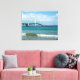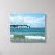 Pacífica tarde de cielo azul en el norte de Michigan con una vista del puente Mackinac que recorre las penínsulas mientras un carguero oscuro empuja por debajo. Las olas que se avecinan caen en la orilla. ¡Este es el tipo de día que se precie!
