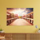 Impresión de lienzo con una fotografía panorámica. Un puente de madera que conduce a un camino rodeado de árboles que cambian de color.