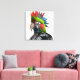 Divertido Punk Rocker Parrot con peinado mohicano vestido con una chaqueta de cuero.